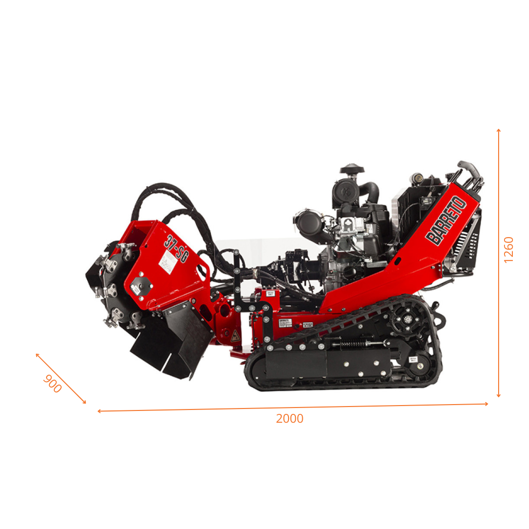 È alimentato da un motore Briggs & Stratton Vanguard V-Twin da 37 hp. Al motore è collegata una pompa a pistoni che fornisce l’olio idraulico del disco di taglio.