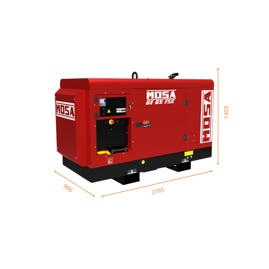 Il generatore GE 65FSX è equipaggiato con un alternatore sincrono trifase, è raffreddato ad acqua, ha una potenza di 66 kW e pesa 1210 kg. Il suo capiente serbatoio da 100 litri gli garantisce un'autonomia di 8 ore.