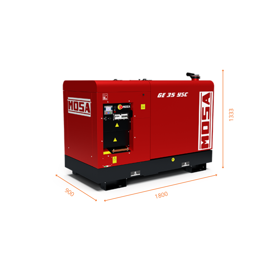 Il modello MOSA GE 35 YSC è un gruppo elettrogeno super silenziato. Con un serbatoio di 55 litri di capacità per 9 h di funzionamento continuo.